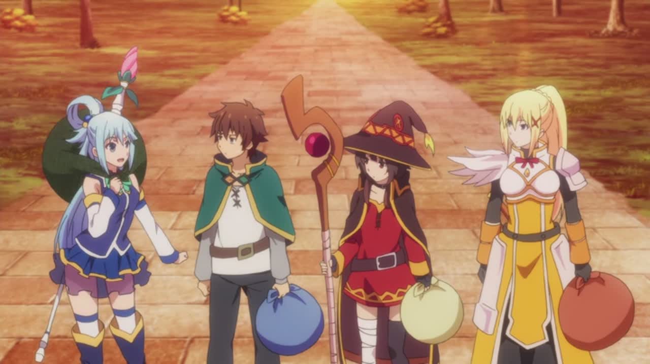 Так уж получилось, что жизнь Кадзумы Сато, хикикомори, увлеченного видеоиграми, оборвалась в результате дорожно-транспортного происшествия. Такая вот суровая плата за хороший поступок, за спасение человека. Однако, очнувшись, парень вдруг понял, что жив-здоров, а перед собой увидел симпатичную девушку Акву, представившуюся богиней. Вопреки ожиданиям, богиня не произнесла, мол — «Ну-ка, парень, сгруппируйся, сейчас тебя на небеса отправим!». Напротив, девушка едва ли не сразу стала объяснять, что ищет героя, способного победить какого-то-там злобного Короля Демонов, и тем самым спасти какой-то-там другой мир. И уж больно этот «какой-то-там» мир был похож на видеоигру. Что, безусловно, подкупало. «Значит, гляди!» — продолжала Аква, — «Если согласишься, можешь взять с собой одну любую вещь или способность. Хочешь, меч из хвоста неведомого чудовища, а хочешь — силу как у горного великана. Ну так как, что выбираешь?» Долго Кадзума думать не стал. «Выбираю тебя!» — сообразил он, чем тут же выбил навязчивую богиню из колеи. Так начинаются приключения странного хикикомори и незадачливой богини по чужому и неприветливому миру, где Кадзума попытается начать новую мирную жизнь, на время позабыв, что зло здесь никогда не дремлет.