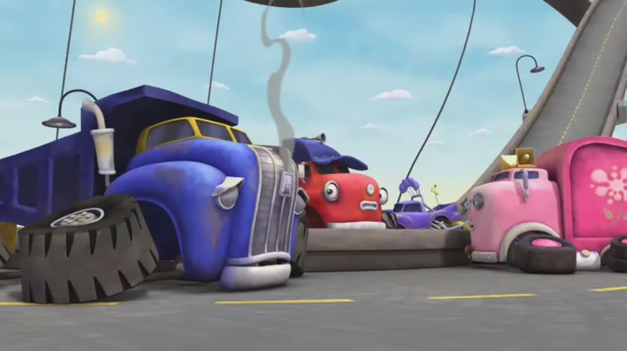 Знакомься! Это красный грузовичок Джек и его друзья! Все они живут в городке под названием Трактаун, и каждый день они весело играют вместе и заводят новых друзей. В первой серии лучший друг Джека Дэн не может ездить нормально, потому что у него новые слишком гладкие и скользкие шины. Тогда друзья решают сделать крутую трассу с препятствиями, чтобы Дэн смог обкатать свои новые шины. Но путь им преграждает верзила Биг Риг...