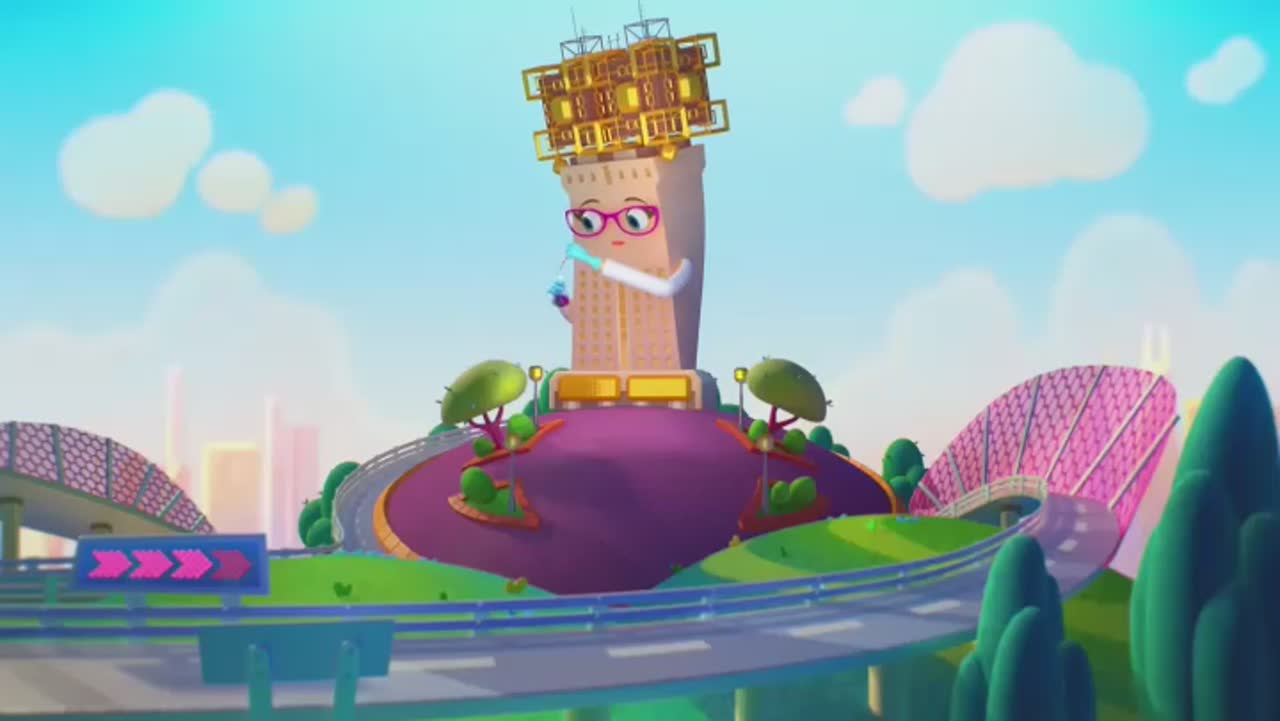 Друзья Гриши - домики на пересечении дачной и городской улиц: небольшой частный домик Вася, задумчивый многоэтажный Петя и школа Маша, девочка-знайка.