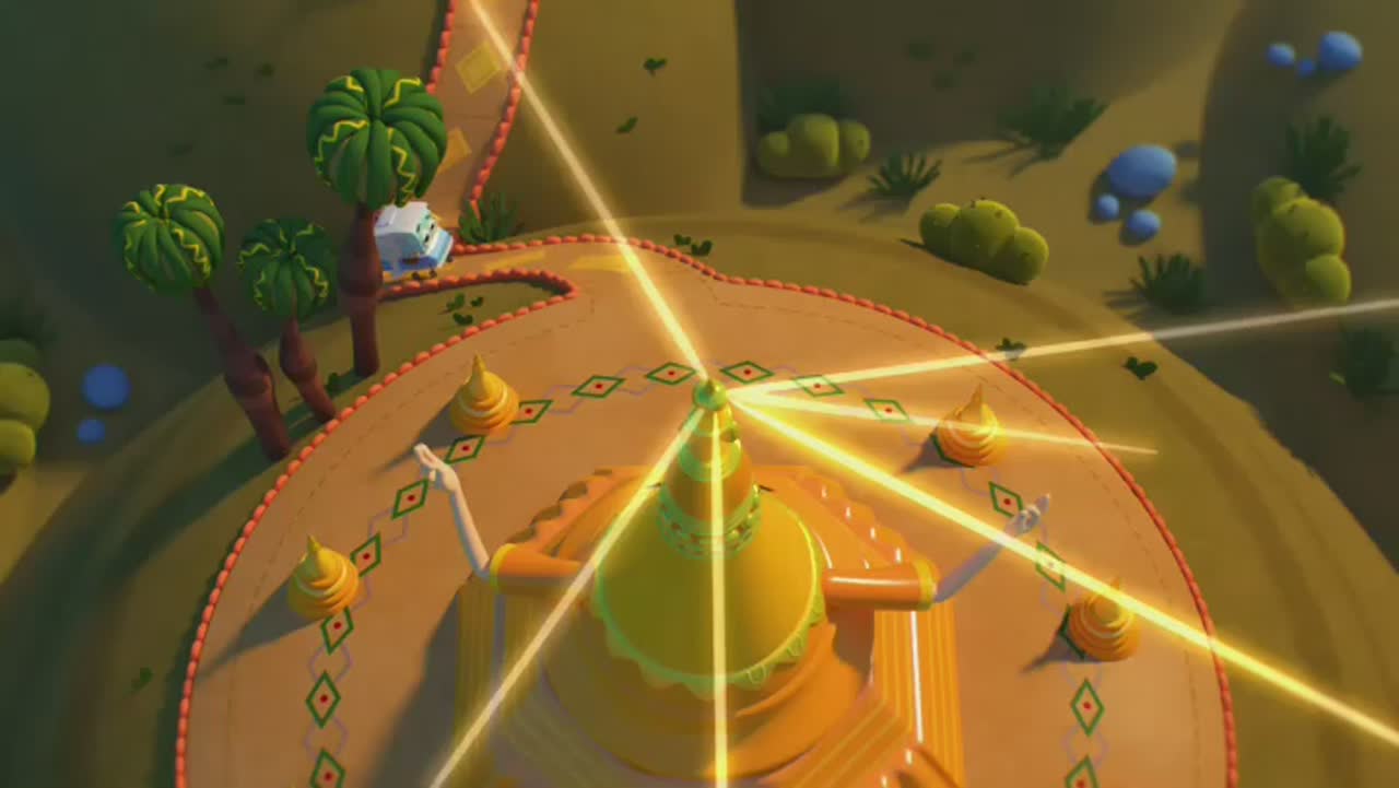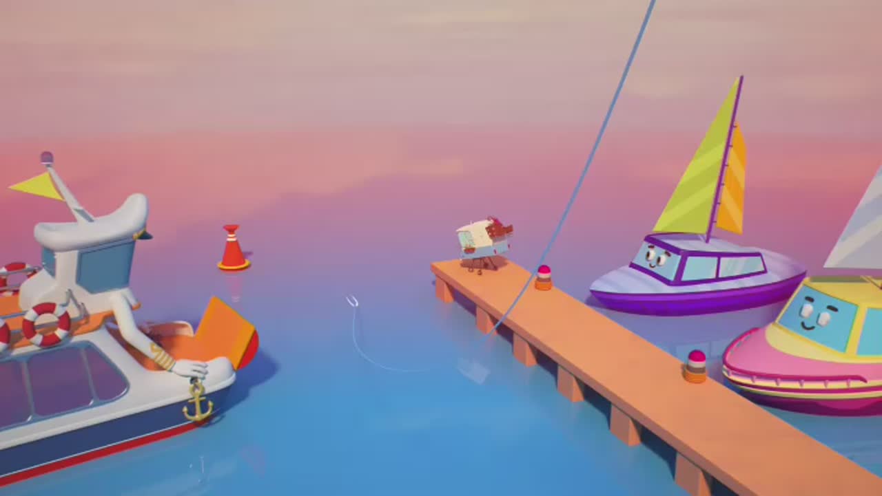 Действие происходит в мире домиков, где все строения могут разговаривать, и у них есть глазки. Домики обычно стоят на месте, но есть и такие, которые умеют передвигаться, например, Гриша - домик-на-колесах.