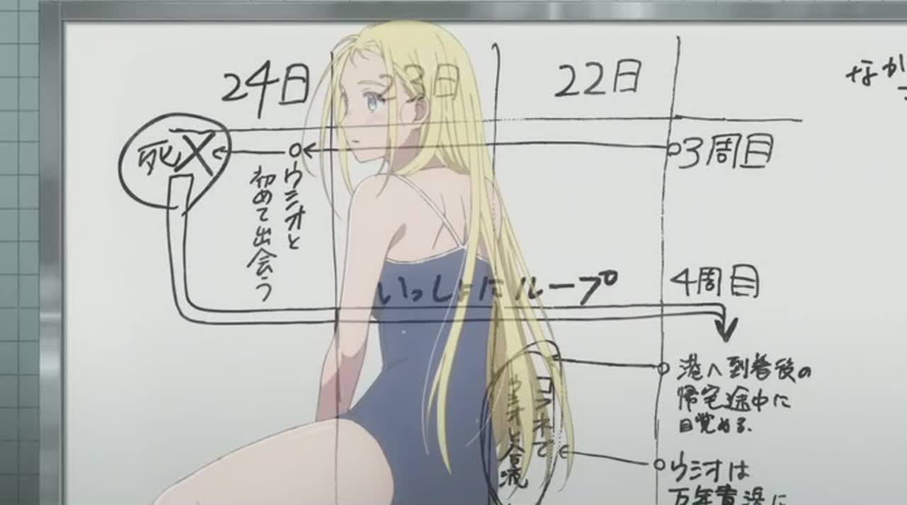 Узнав о внезапной кончине своей сводной сестренки Юшио, Шинпэй возвращается в родной город на похороны. Казалось бы, ничего необычного, сестра, пытаясь спасти тонущего ребенка, сама рассталась жизнью. Но разве всё может быть так банально и просто? Вот и островитяне, те, что видели тело бедной девочки со следами удушения, не верят, что это был несчастный случай. А ещё говорят, являются в мир этот духи-двойники, что смерть приносят тем, кто их увидит… Пытаясь разобраться в случившемся, Шинпэ́й сам неожиданно погибает, но, очнувшись, оказывается во временной петле…
