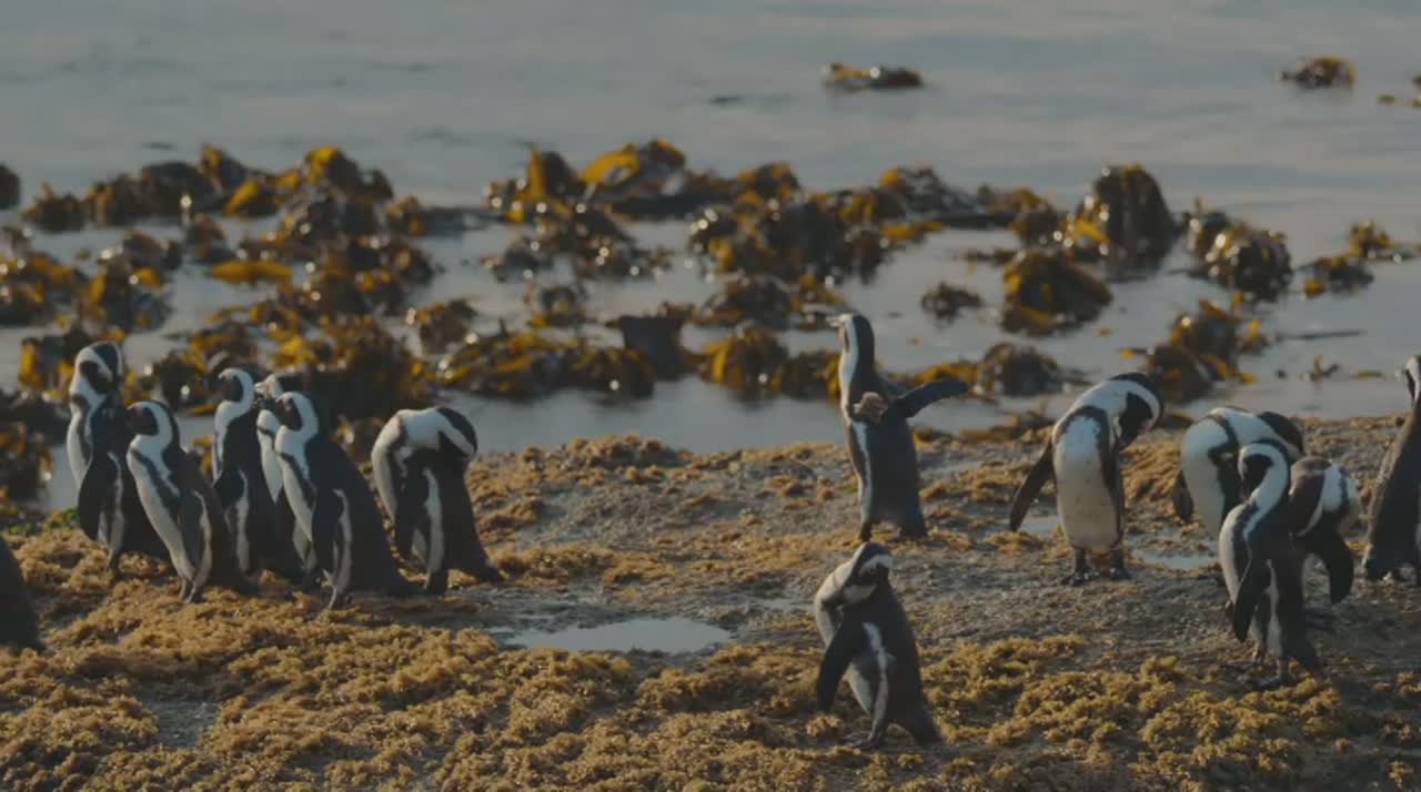 В живописном южноафриканском городке несколько вымирающих видов пингвинов сбиваются в стаю, чтобы искать партнеров, растить птенцов и контактировать с местными жителями.