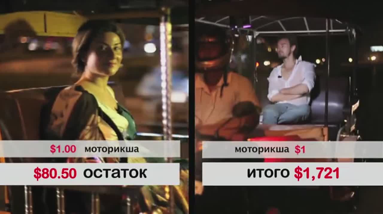 Каждые выходные двое ведущих отправляются в различные города мира. По правилам программы один ведущий должен прожить субботу и воскресенье на 100 долларов, а второй может тратить неограниченные средства, которые хранятся на золотой карте. Чтобы решить, кто из них будет жить как миллионер, а кто будет учиться выживанию, ведущие перед каждым путешествиям бросают монету, и каждый раз всё решает Орёл или решка.