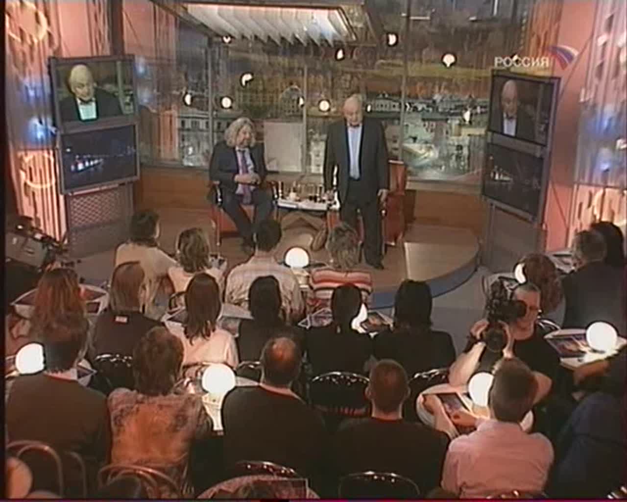 Один раз в месяц на ТВ выходит телепередача, в которой М.М. Жванецкий, отвечая на вопросы ведущего, комментирует события произошедшие в стране за истекший месяц, отвечает на вопросы зрителей и читает что-нибудь новое.