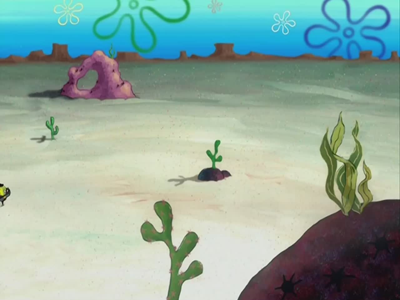 Население подводного городка Бикини Боттом составляют разные морские обитатели. Среди них - лучший друг Спанч Боба, морская звезда по имени Патрик, раздражительный надменный кальмар Сквидвард и белка по имени Сэнди, которая тоже живёт под водой, используя гидрокостюм. Спанч Боб работает поваром в закусочной «Красти Краб», которая управляется старым скрягой мистером Крабсом
