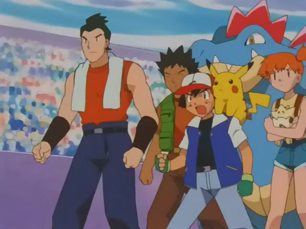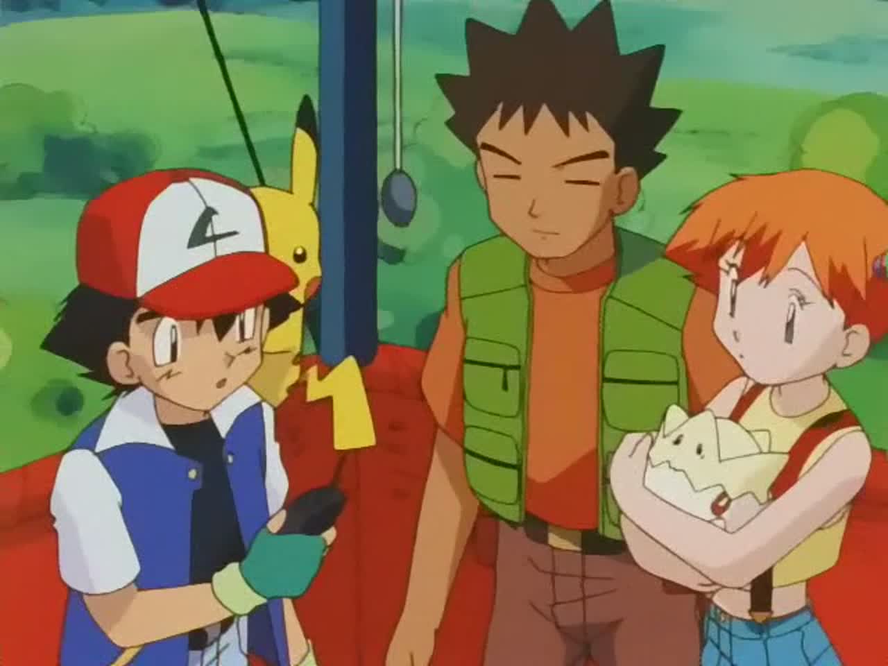 Мальчик Эш отправляется со своим первым покемоном Пикачу в путешествие с целью стать величайшим Мастером Покемонов на свете. По пути к нему присоединяются Брок, повернутый на девочках тренер каменных покемонов, и девчонка-сорванец Мисти, тренер водяных покемонов, которой, похоже, приглянулся Эш. Друзья путешествуют по всей стране, участвуя в различных соревнованиях покемонов. Однако по дороге им все время мешают Джесси, Джеймс и Мяут — троица воришек, охотящихся за Пикачу.