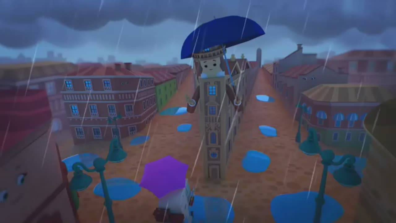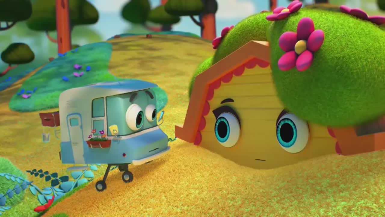 Действие происходит в мире домиков, где все строения могут разговаривать, и у них есть глазки. Домики обычно стоят на месте, но есть и такие, которые умеют передвигаться, например, Гриша - домик-на-колесах.