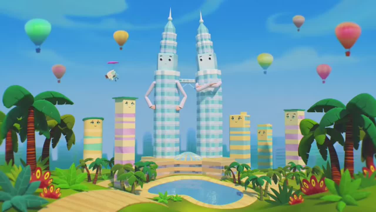 Друзья Гриши - домики на пересечении дачной и городской улиц: небольшой частный домик Вася, задумчивый многоэтажный Петя и школа Маша, девочка-знайка.