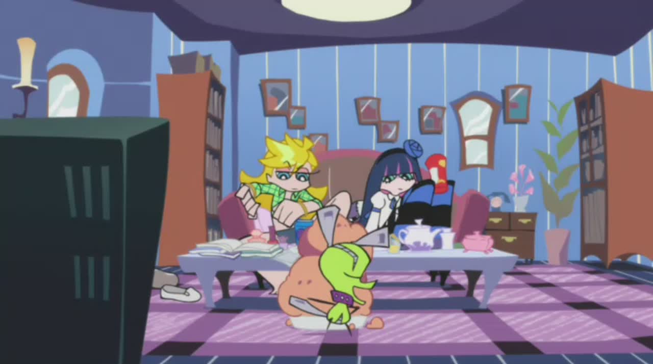 Между небом и преисподней раскинулся огромный Датэн-сити, где миллионы людей живут обычной жизнью – помаленьку грешат, помаленьку страдают, в меру сил ищут счастья и удовольствия. Вот только в людскую жизнь постоянно вмешиваются злобные духи, на которых нет решительно никакой управы – кроме горячей молитвы, разумеется. И Небеса откликнулись, послав на помощь страждущим двух бесстрашных сестер из ангельских войск вместе с мудрым наставником…Вообще-то, сестер-ангелочков из Рая просто выкинули за безобразное поведение - и было за что. Старшая, Панти (кличка Трусики) – законченная нимфоманка и богохульница; младшая, Стокинг (она же Чулочек) – лентяйка и сладкоежка в образе «готической лолиты». К тому же сестренки в тяжкой форме страдают садомазохизмом, сквернословием и полным небрежением к морали и частной собственности. Но Бог милостив – он дал изгнанницам шанс вернуться в райские кущи, если те изведут в городе злобных духов, попутно заработав энное количество небесной валюты.Так что теперь Панти и Стокинг прочно встали на путь исправления и сотрудничества с администрацией в лице их куратора Гартербельта (он же святой отец Поясок). Превращая трусики в пистолеты, чулки – в катаны, а милую зверушку Чака – вообще черт знает во что, героини грудью встали на защиту Датэн-сити и комедийно-абсурдистского жанра!