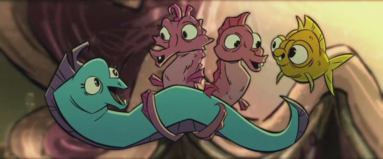 Сплинтер и Эйприл сражаются с золотой рыбкой