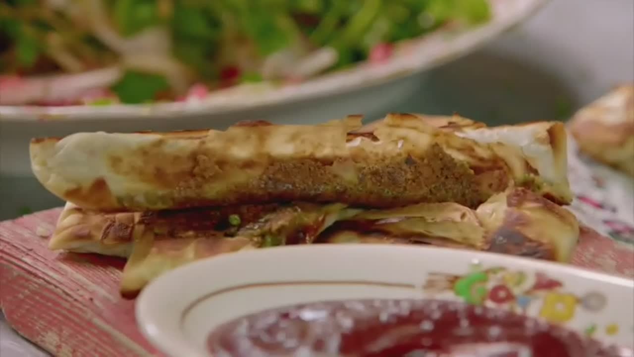Китайская курочка с соусом хоисин с воздушными кокосовыми булочками и золотистые крабовые брики из Туниса